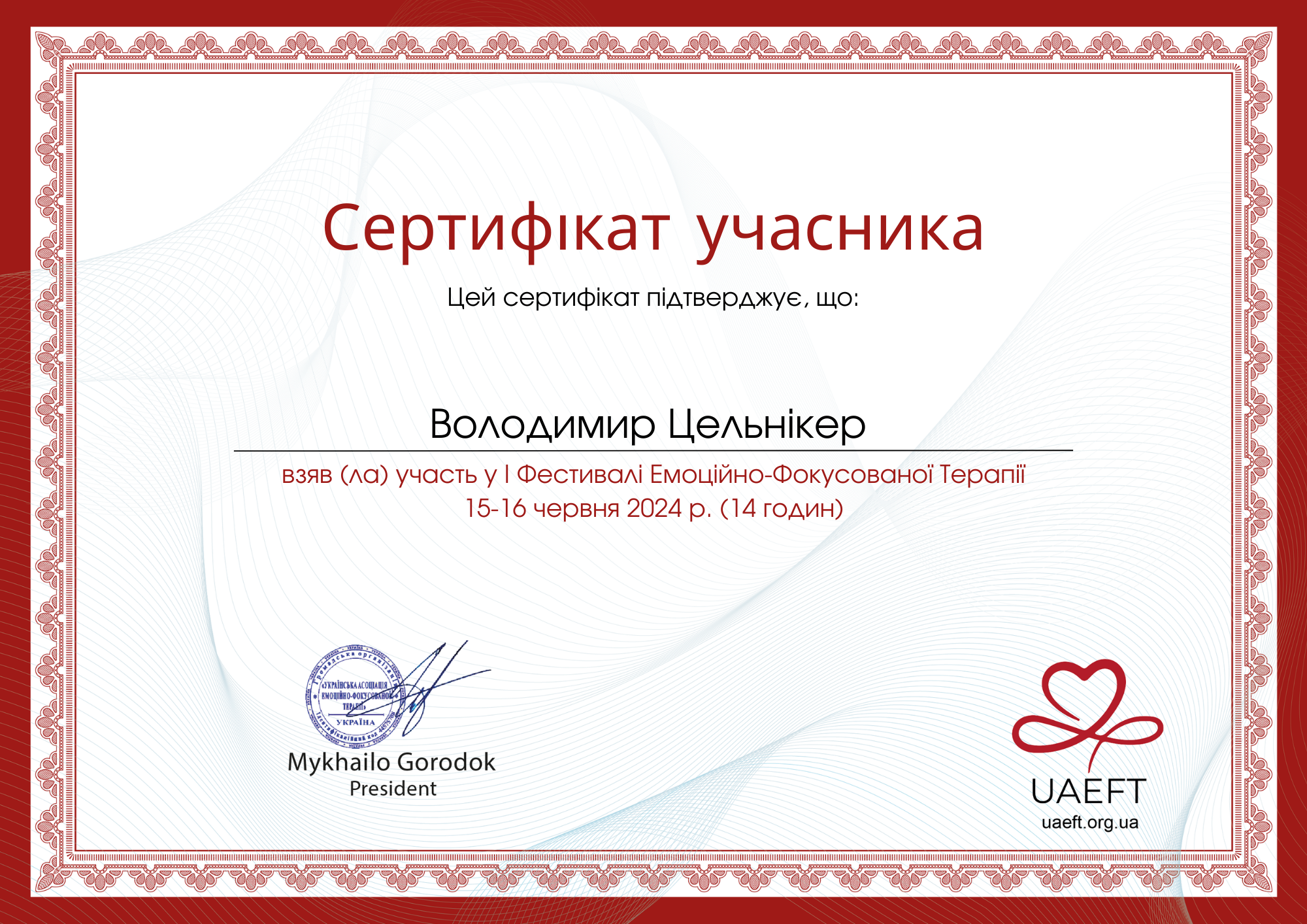2024 — Фестиваль Емоційно-Фокусованої Терапії (участь), (UAEEFT)