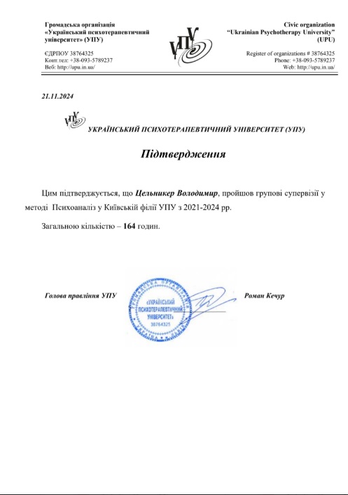 2021–2024 — Групова супервізія в методі психоаналізу, Київська філія Українського психотерапевтичного університету (УПУ)
