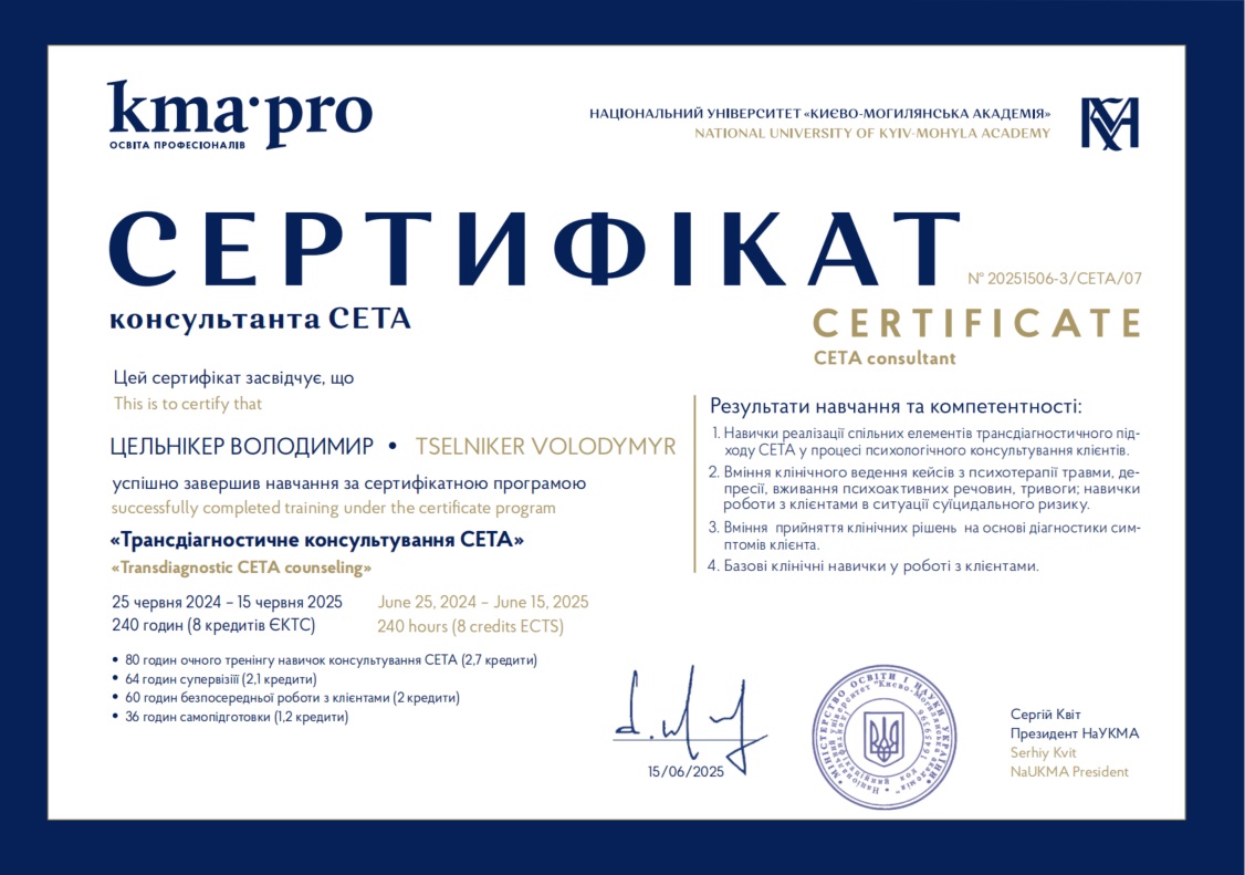 2024–2025 — «Трансдіагностичне консультування CETA», НаУКМА
