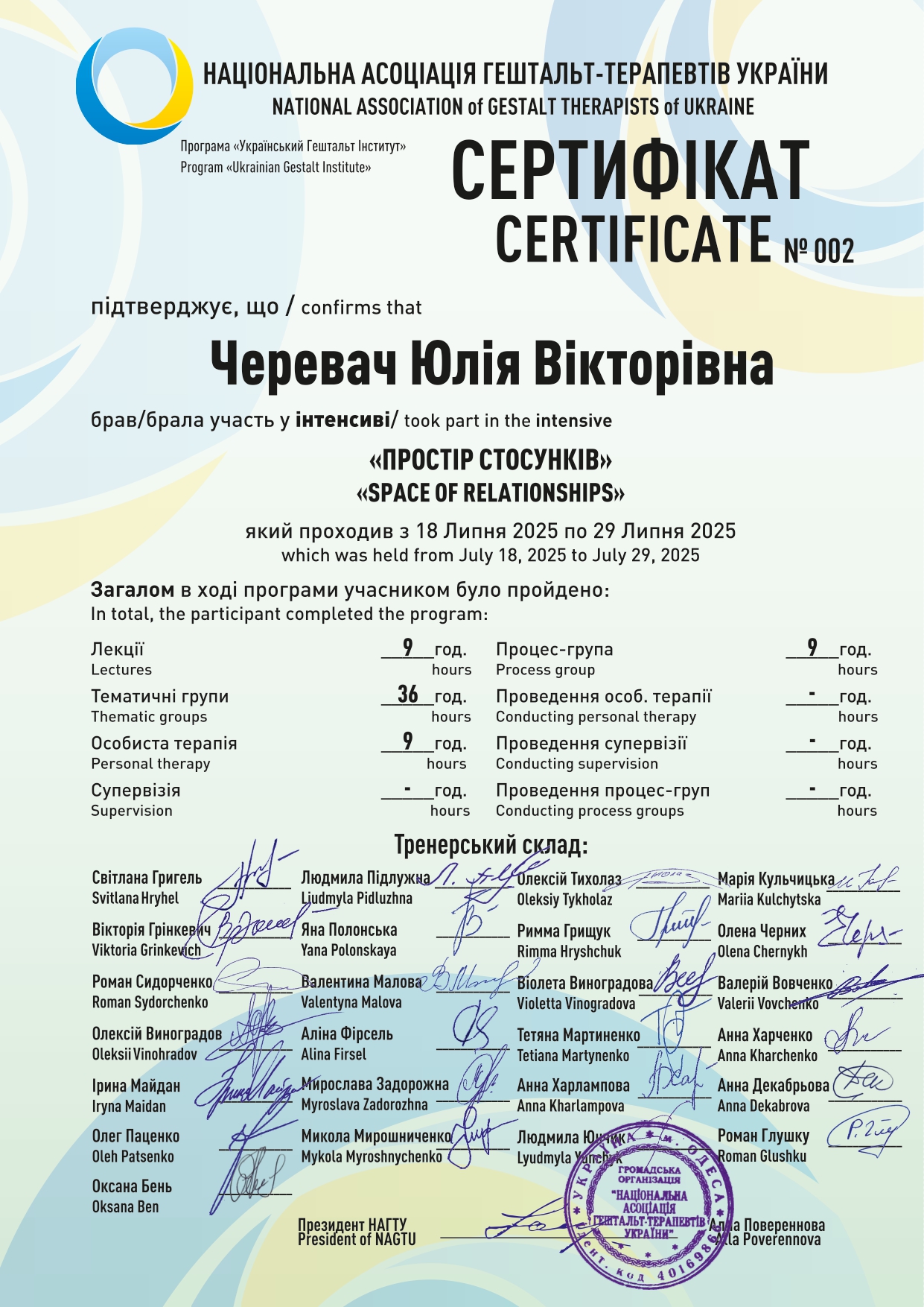 2025 – Інтенсив «Простір Стосунків» від Національної асоціації гештальт-терапевтів України