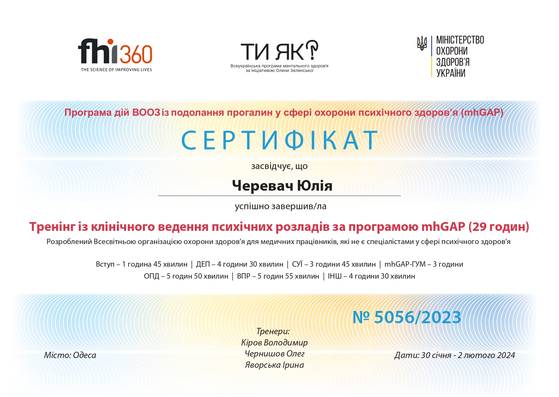 2024 – Тренінг із клінічного ведення психічних розладів за програмою mhGAP (Від ВООЗ)