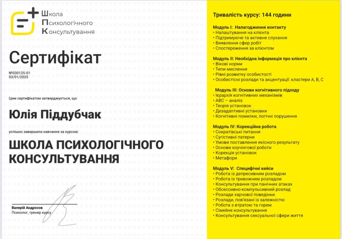 - Школа психологічного консультування 2024, 6 місяців (144 години)