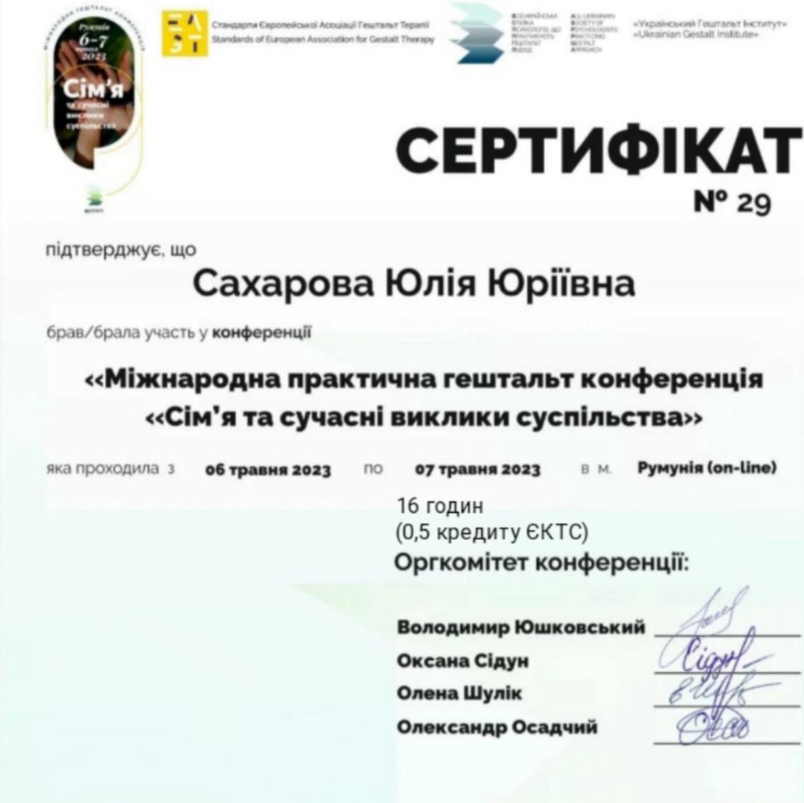 2023 — Міжнародна практична гештальт-конференція «Сім’я та сучасні виклики суспільства», Національна асоціація гештальт-терапевтів України, Український гештальт-інститут