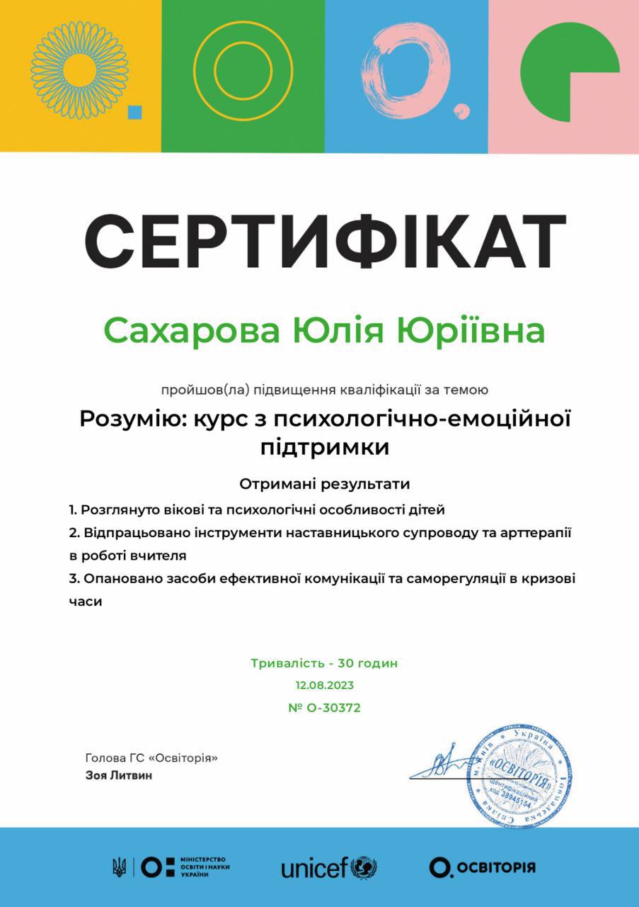 2023 — «Розумію: курс з психологічно-емоційної підтримки», ГО «Освіторія», UNICEF